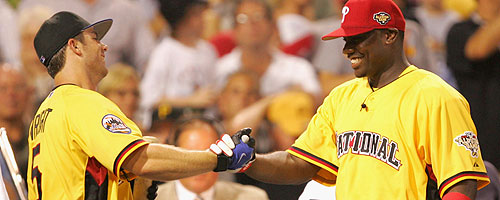 I have to admit I felt a little intimidated standing in line with the other Home Run Derby contestants for introductions. I was one of the smallest guys there, along with Miguel Tejada. We were sandwiched in there between monsters like David Ortiz, Ryan Howard, Troy Glaus, Jermaine Dye. But I think I?ll be able to hold my head high when I get back with my teammates in Chicago later this week. I?m pretty sure I surpassed the expectations they had for me back in the clubhouse.